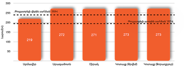 - Արմավիրի մարզում՝ փոխակերպիչի անջատված վիճակում լարումը եղել է 216 Վ, իսկ աշխատելիս բարձրացել է մինչև 219 Վ